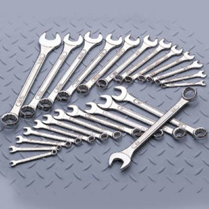 Da Passione Officina un kit da 24 chiavi inglesi aperte e chiuse, con misure imperiali e metriche e angolo della testa di 15° un solo set per effettuare manutenzione su auto e moto inglesi, americane o europee.