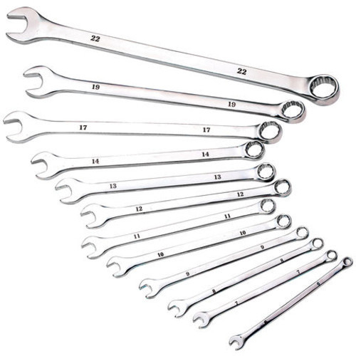 Questo kit di chiavi inglesi combinate esagonali e poligonali contiene 12 chiavi extralunghe, adatte ad applicare più forza per svitare dadi o bulloni, oppure per raggiungere aree difficili. Finitura cromata lucidata a specchio, per evitare l'accumulo di grasso o sporcizia sulla superficie.